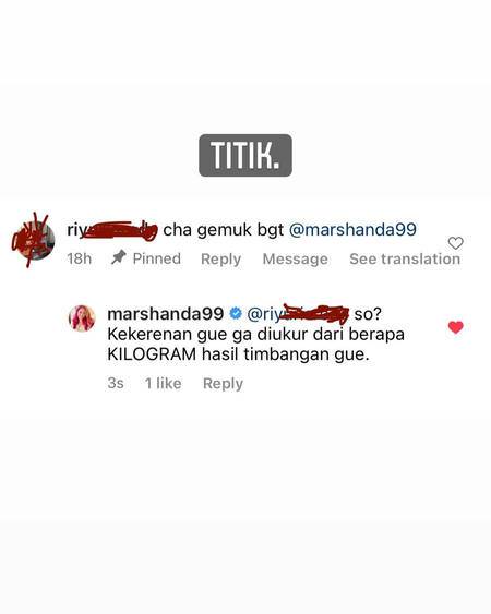 \”So? Kekerenan gue nggak diukur dari berapa kilogram hasil timbangan gue,\” kata Marshanda dengan tegas.